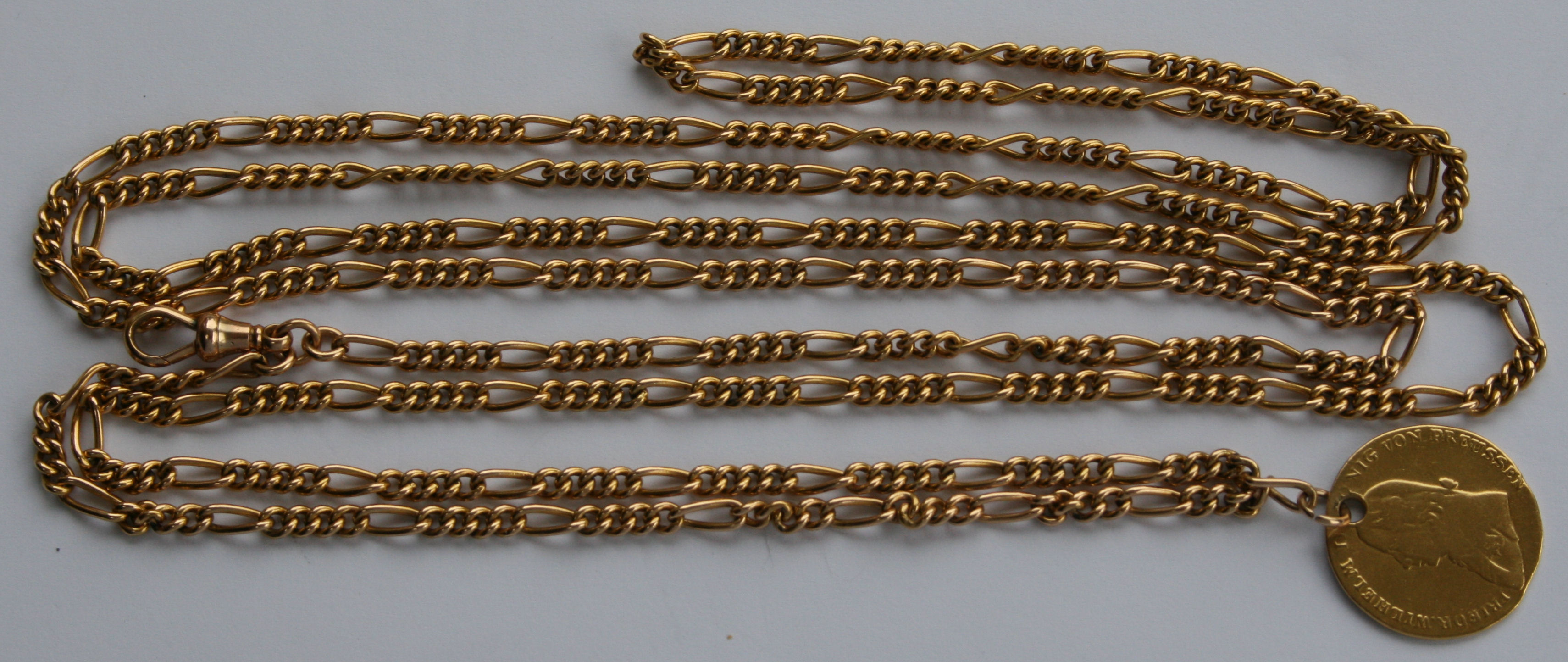 the coin (holed) Germany, Prussia. Frederick d'or 1813, the long chain of curb and elongated links with spring clip