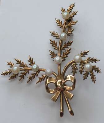 A group of five gold, opal, pearl and gem set brooches