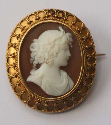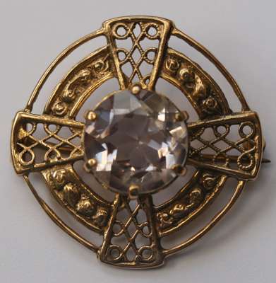 a 9ct gold brooch of Celtic design, circular and with central pale amethyst; an early 19th century foil backed paste brooch, gold frame; an early 19th century paste set pendant, chased frame, foil backed paste; a Victorian star brooch with onyx disc and onset pearl set star motif; a carved shell cameo brooch; a Victorian brooch decorated with cannatille detail; a garnet and pearl set brooch of scrolling form; an oval citrine brooch with citrine