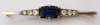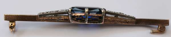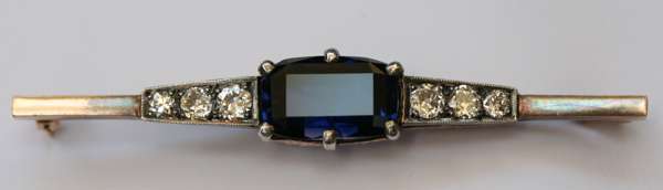 the rectangular cut sapphire claw set and with three graduated circular cut diamonds to each side, tapering white gold terminals