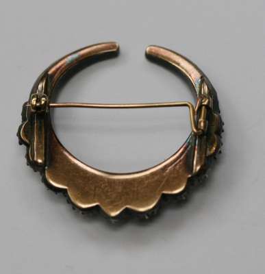 of double row form claw set and enclosed back graduated rows of circular, cushion and large rose cut diamonds
