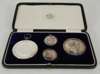 comprising four medallions, one large glazed example, one large medallion and two smaller medallions, each awarded to the Ogg family, in late Victorian fitted case