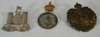 Birmingham 1888, the three turretted castle with banner bellow, the reverse engraved in script 'No 882 ??? Serg Major Rough Rider S ?????, Inniskilling Dragoons Pietermaritzburd 21st June 1887' later brooch mounted; together with a CEF 236 Maclean Kitlies of American cap badge and a 1877 Victorian medallion (3)