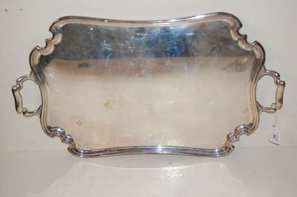 Atkin Brothers, Sheffield 1912, of shaped rectangular outline with moulded border and twin shaped loop handles