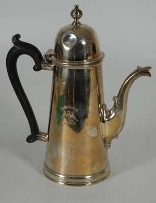 London 1914, with flared cylindrical body with S scroll spout and domed hinged cover