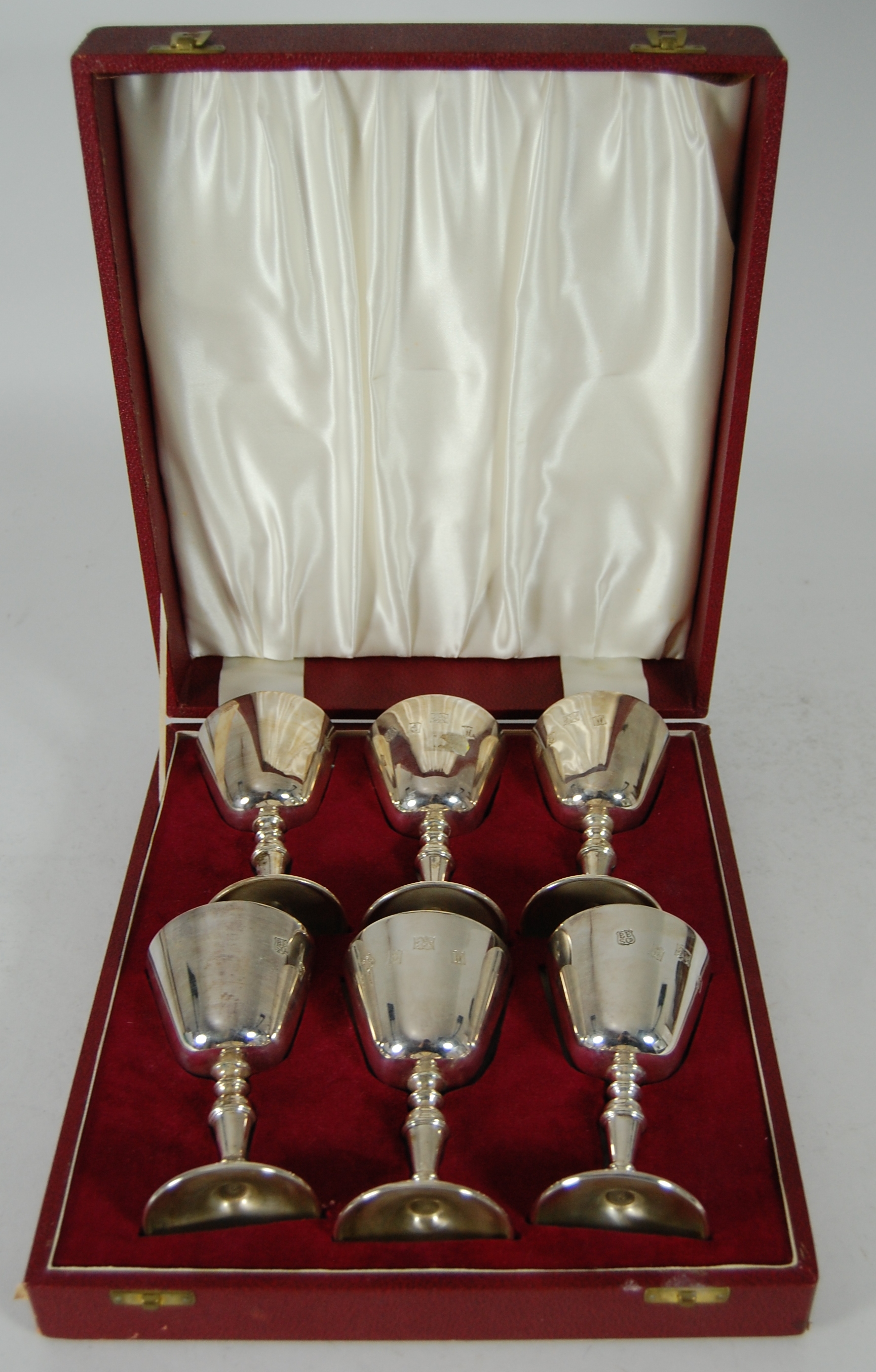 B E S Co, Birmingham 1996, the tapered bowls with feature hallmarks, raised on knopped stem and spreading circular foot, contained in fitted case
