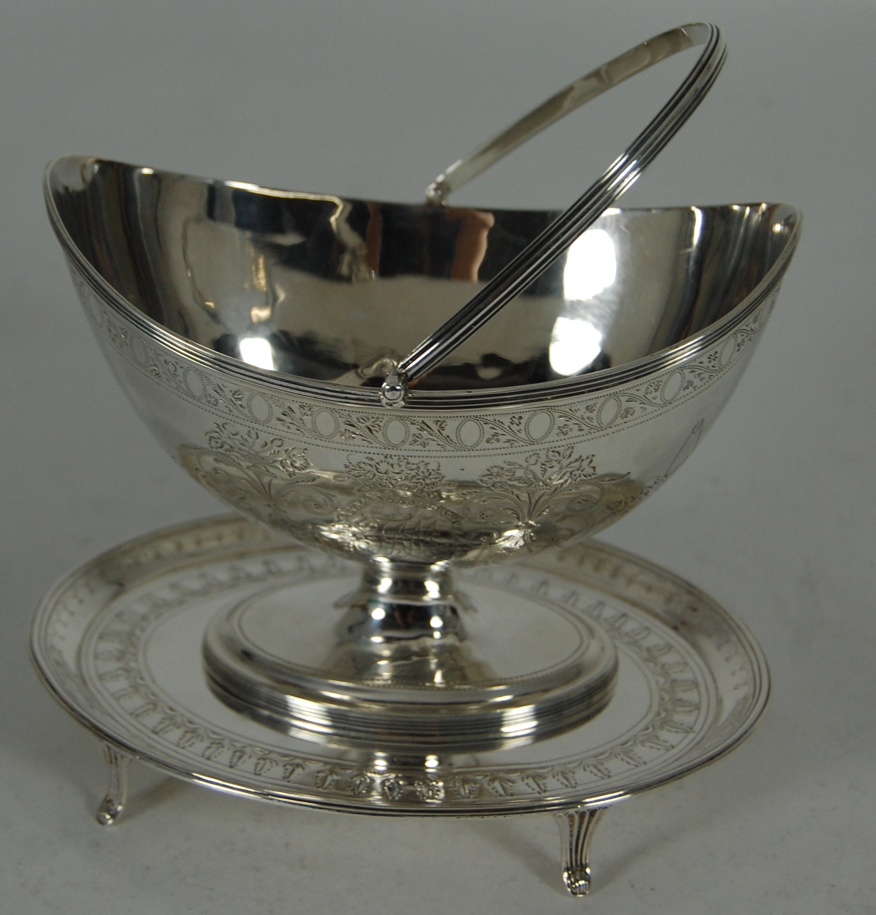 A matched George III swing handled sugar bowl and teapot stand
