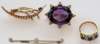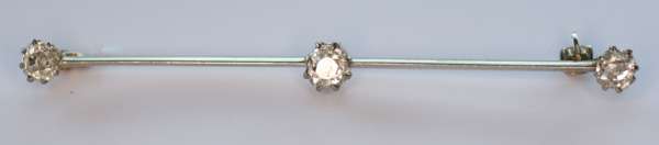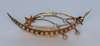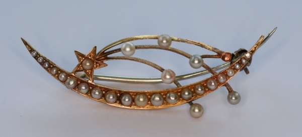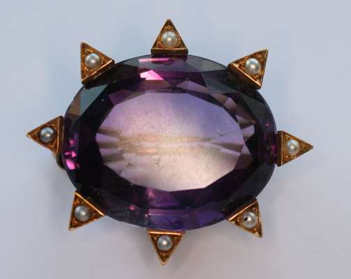 set three graduated oval sapphires with diamonds in between, together with a pearl set bar brooch modelled as a comet and a crescent, a diamond set bar brooch claw set with three circular cut diamonds, an oval amethyst gold brooch with pearl set border (4)