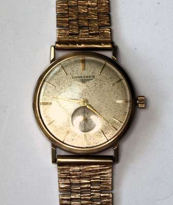 LONGINES - a gent's 9ct gold cased wrist watch