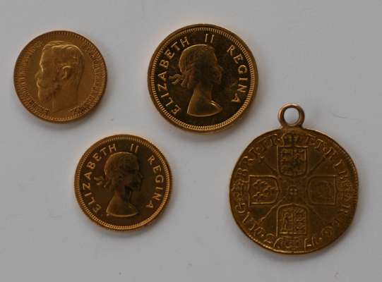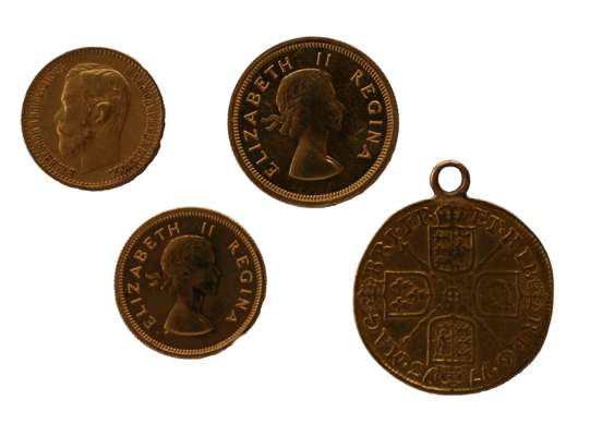 with soldered suspension; A SA £1 and half pond 1953; Russia 5 Roubles 1899