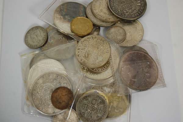 to containing various USA dollars, various pre 1947 UK coinage and other world coins; also a small amount of base metal coinage (qty)