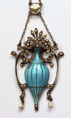 An Art Nouveau silver and enamel pendant necklace