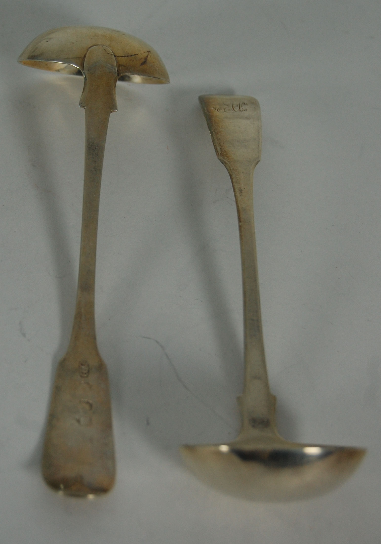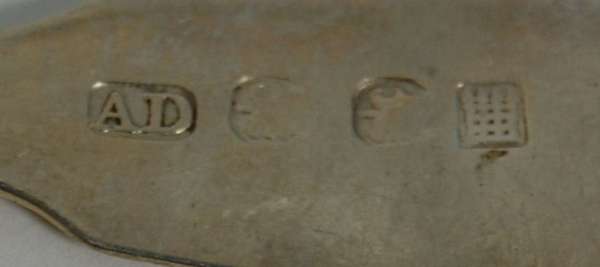 Alexander Davidson, marked AD, plant, plant, portcullis, of Fiddle pattern with foliate initials 'AL' to terminal (2)