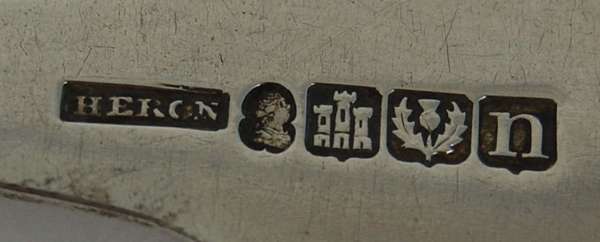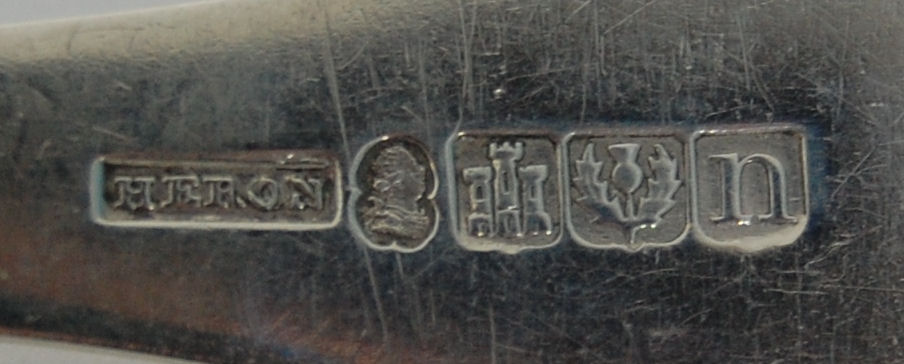 John Heron, marked HERON, Edinburgh 1819, of Fiddle and Shell pattern with engraved initial IR to terminal (2)