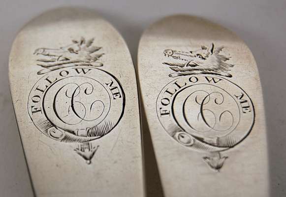 Patrick Robertson, Edinburgh 1789 - 1790, of Celtic Point pattern with engraved crest above motto within garter to terminal (2)