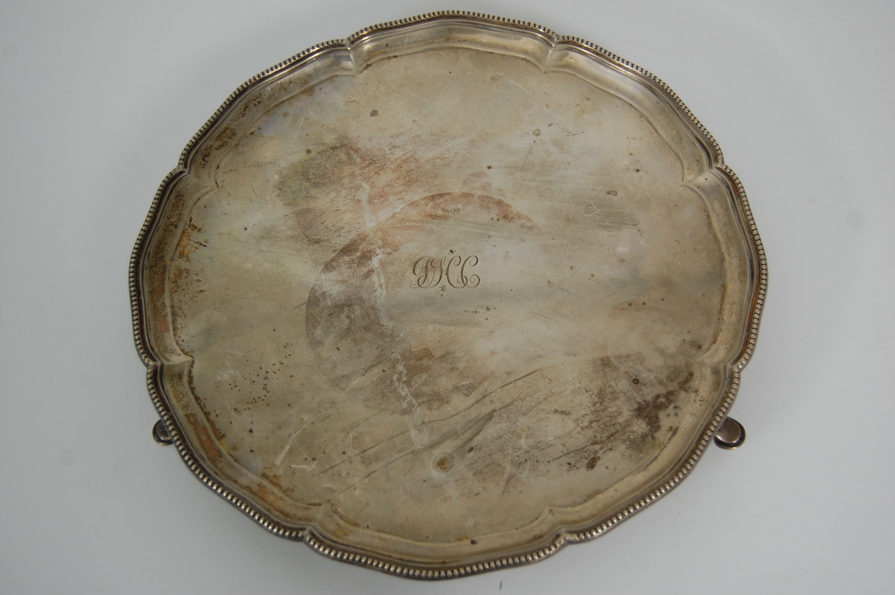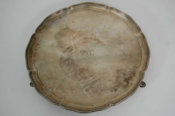Edward (of Glasgow), Sheffield 1923, of shaped circular outline with beaded rim and raised on three hoof feet