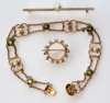 of circular form, set small diamonds in rubover setting, together with an Edwardian pearl and peridot set chain link bracelet, the pearls set in c-scroll framed panels and a small pearl set bar brooch (3)