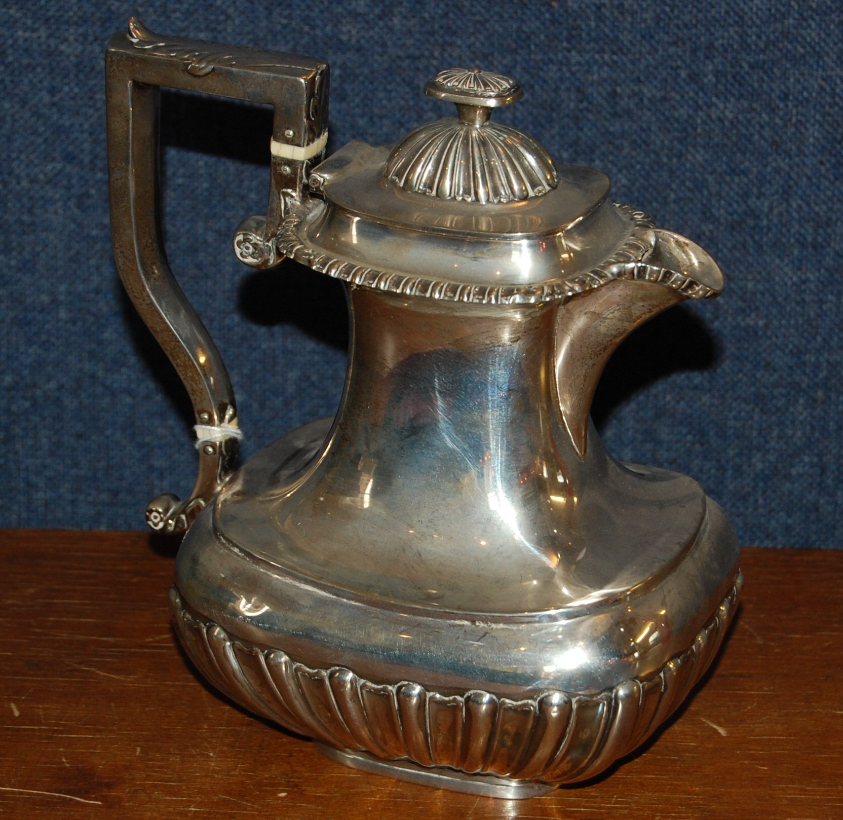 London 1901, the baluster body with lobed lower section and acanthus capped angular handle, with fluted hinged cover and gadrooned rim