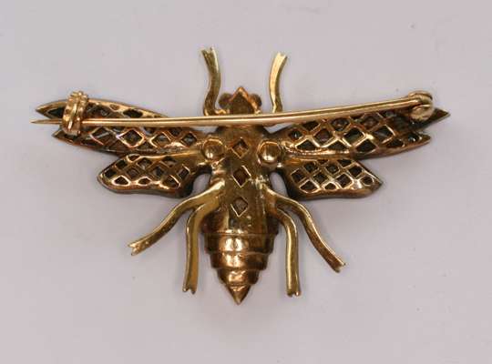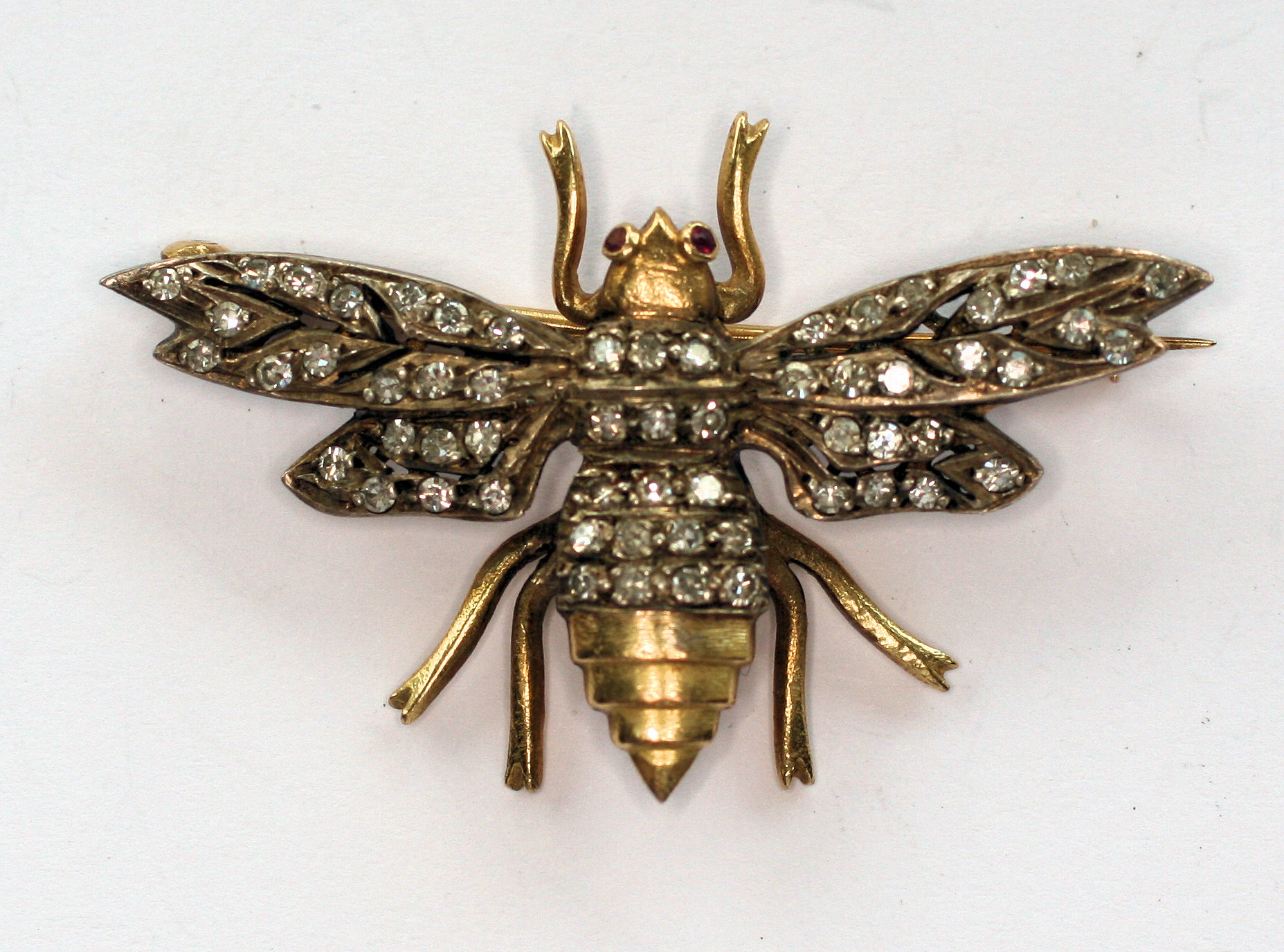 naturalistically modelled, ruby set eyes, diamond set wings and body