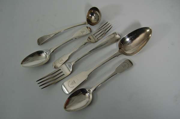 various dates and makers, mainly Fiddle pattern, to include tablespoons table forks, teaspoons etc (qty)