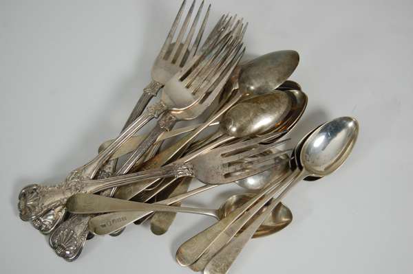 M&S, Glasgow 1826, of single struck Kings patter with initial to terminal; together with a set of seventeen Victorian teaspoons, Glasgow 1876 (23)