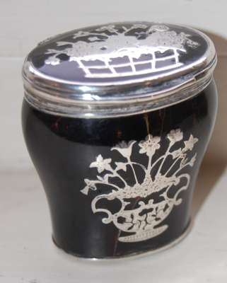 A mid 18th century silver inlaid tortoiseshell baluster snuff mull