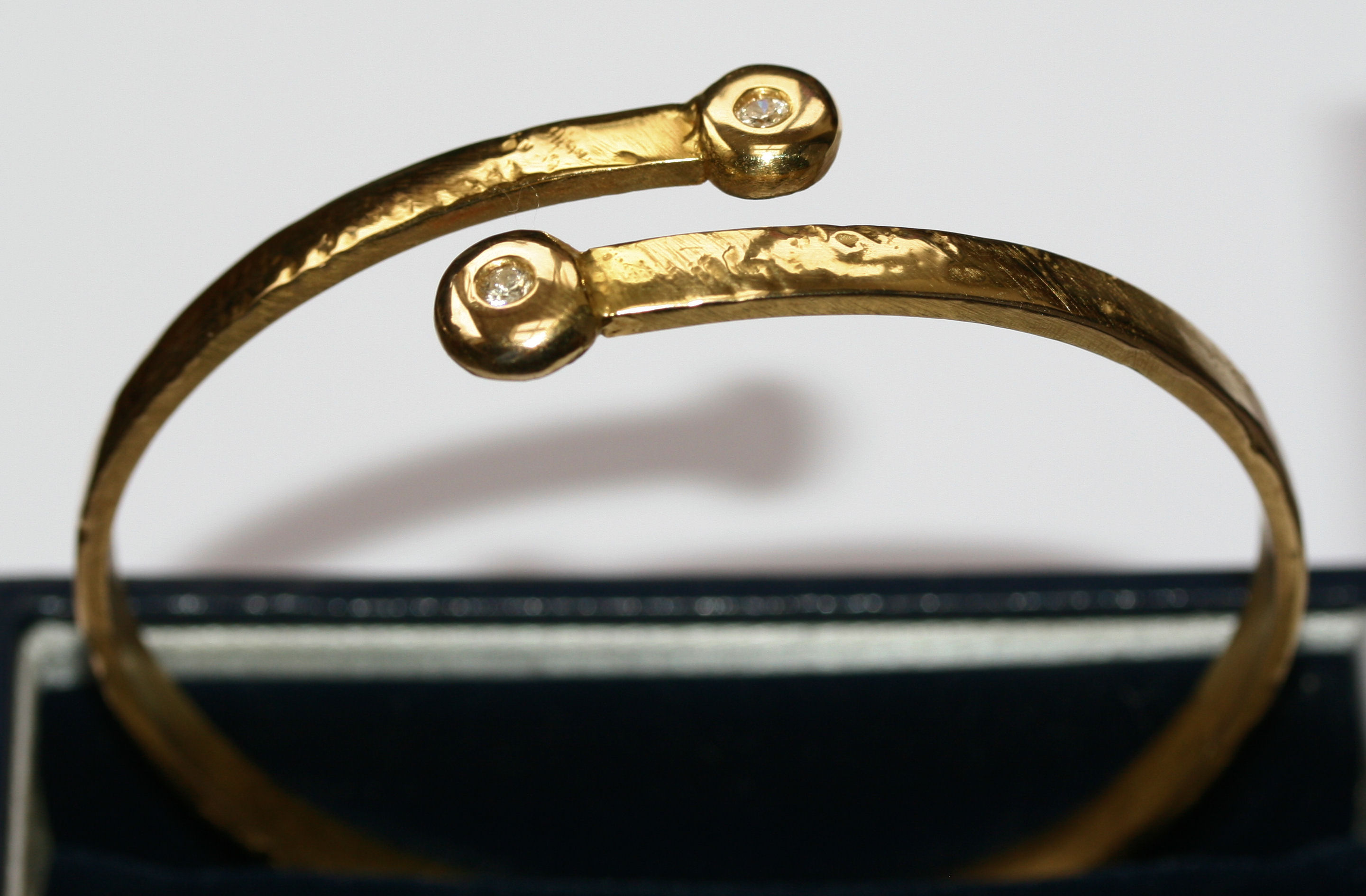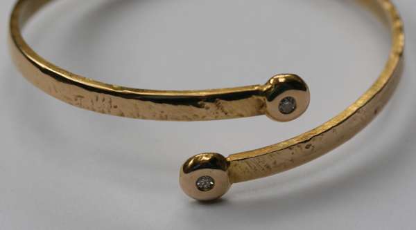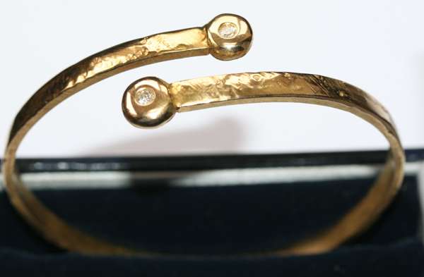 A diamond set torque form bangle