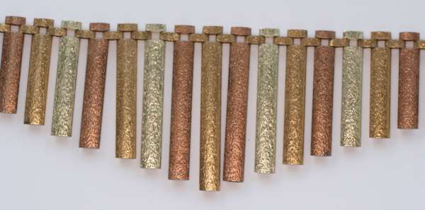 A 1970's three colour 9ct gold fringe necklace