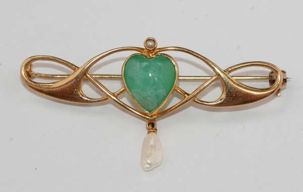 An Art Nouveau style jade brooch