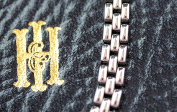 of polished ribbed form, laser marked 18ct gold, in a Hamilton & Inches box