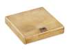 signed CARTIER, 14k, of simple square form with reeded decoration and and applied diamond set C to cover, the interior with fitted mirror