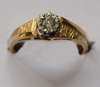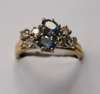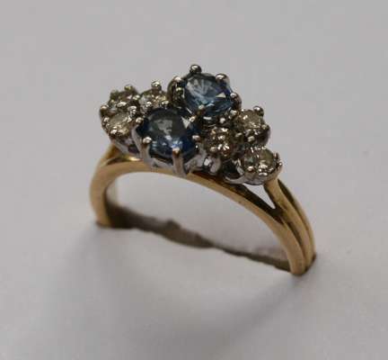 the two off set pale blue sapphires with three small circular cut diamonds to each side, together with a small diamond set solitaire ring