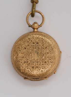 plain enamel dial, allover engraved decoration, the lever movement engraved D Gaylor Hawick