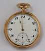 the plain case with a white enamel dial, inscribed and with Arabic numerals, subsidiary seconds dial, gold hands, the lever movement numbered 10492 and strikes on two gongs