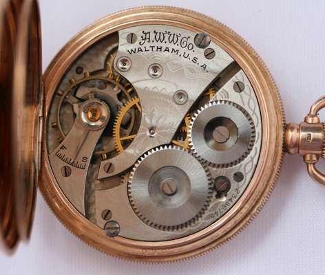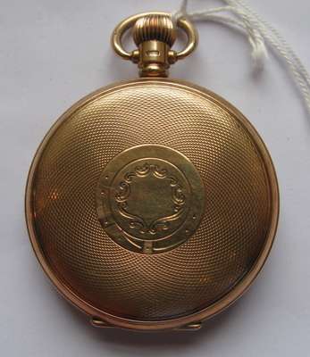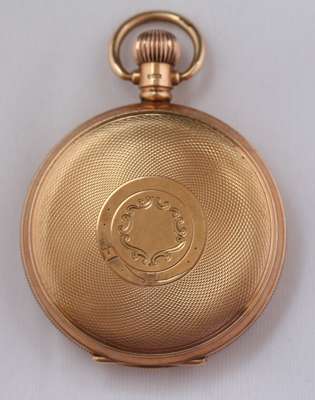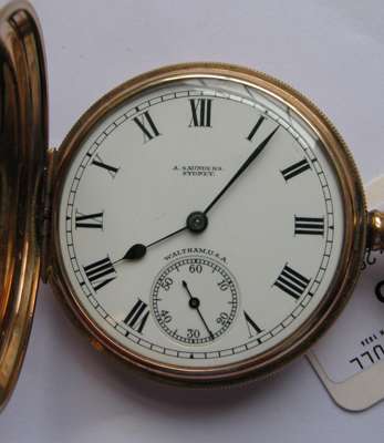 engine turned case, the enamel dial inscribed 'A Saunders Sydney', Roman numerals, subsidiary seconds dial, three quarter plate lever movement by Waltham