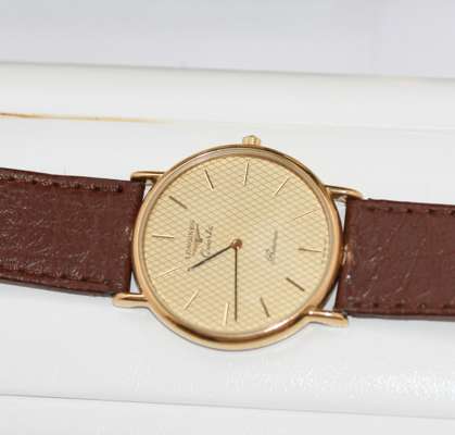 Gentleman's Presence, quartz, cased, leather strap, another expanding gilt bracelet, cased, and another (3)