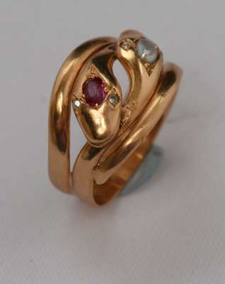 indistinctly marked and modelled as two coiled snakes, with gem set heads