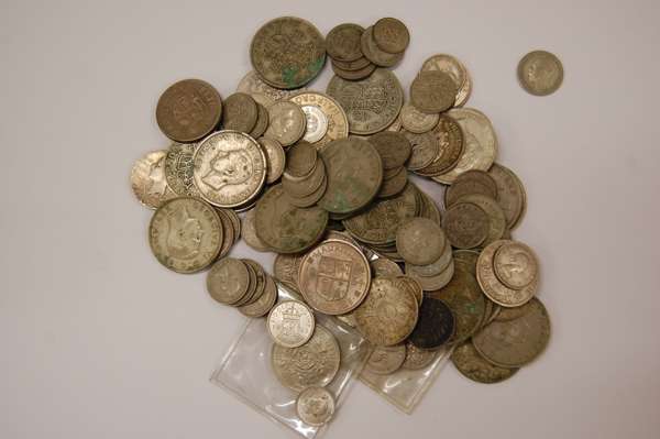 all halfcrowns and smaller issues, various monarchs etc. noted, also to include some foreign issues (qty)