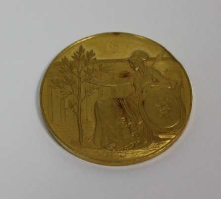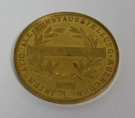 awarded to James W Hamilton, the obverse with seated figure with classical building behind, the reverse inscribed 'JAMES W HAMILTON 1897' with motto INTERNATIONALE KUNSTAUSSTELLUNG MUENCHEN' around