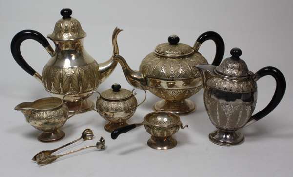 An eastern seven piece white metal coffee service