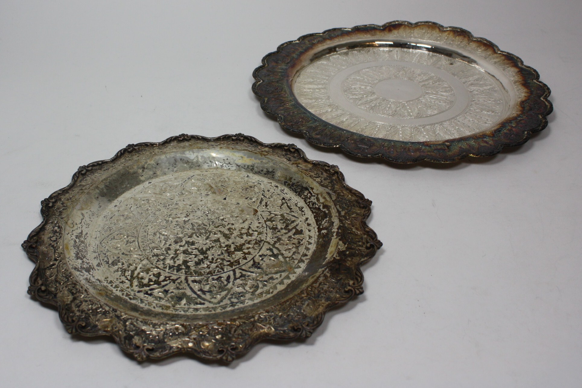 each of scalloped circular form with profusely decorated borders and flats, with floral and arched motifs (2)
