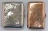 of rectangular form with foliate engraved border and gothic monogrammed initials; together with a small silver cigarette case with foliate engraving and initial (2)