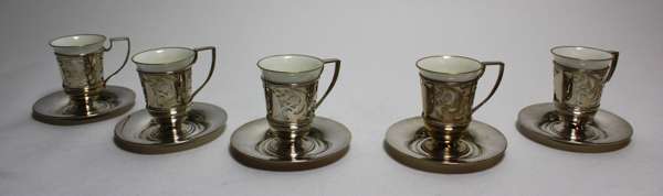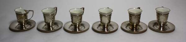 A set of six silver mounted Aynsley cups and saucers