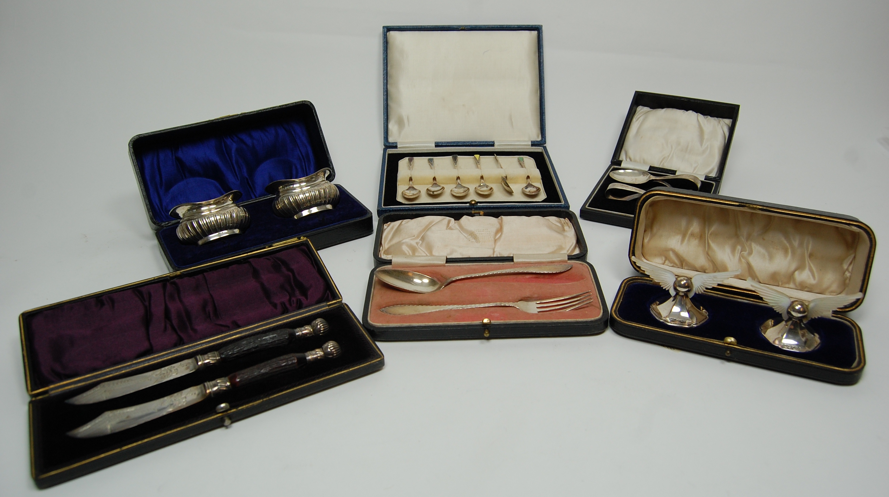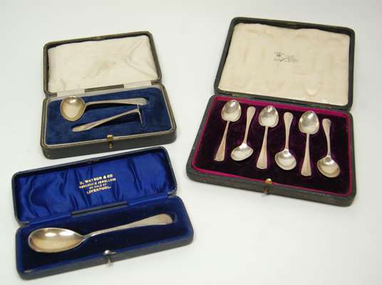 A collection of cased spoons