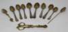 to include a set of five gilt cast vine stem teaspoons with matching sugar nips and mote spoon, unmarked; a set of six silver gilt Britannia standard Hanoverian teaspoon with rat tail to bowls and twenty later decorated Hanoverian teaspoons with embossed and chased decoration (qty)