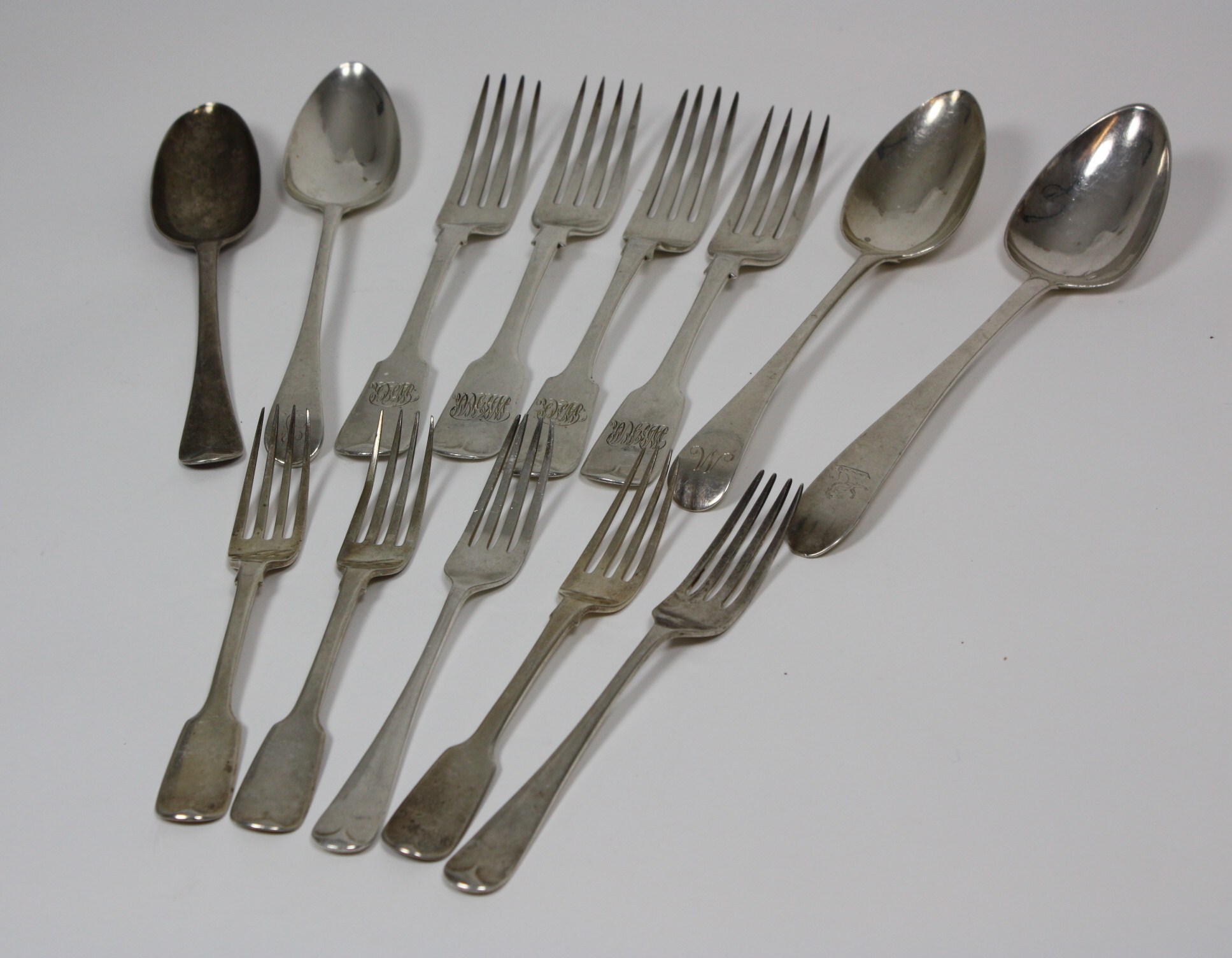 A group of English flatware