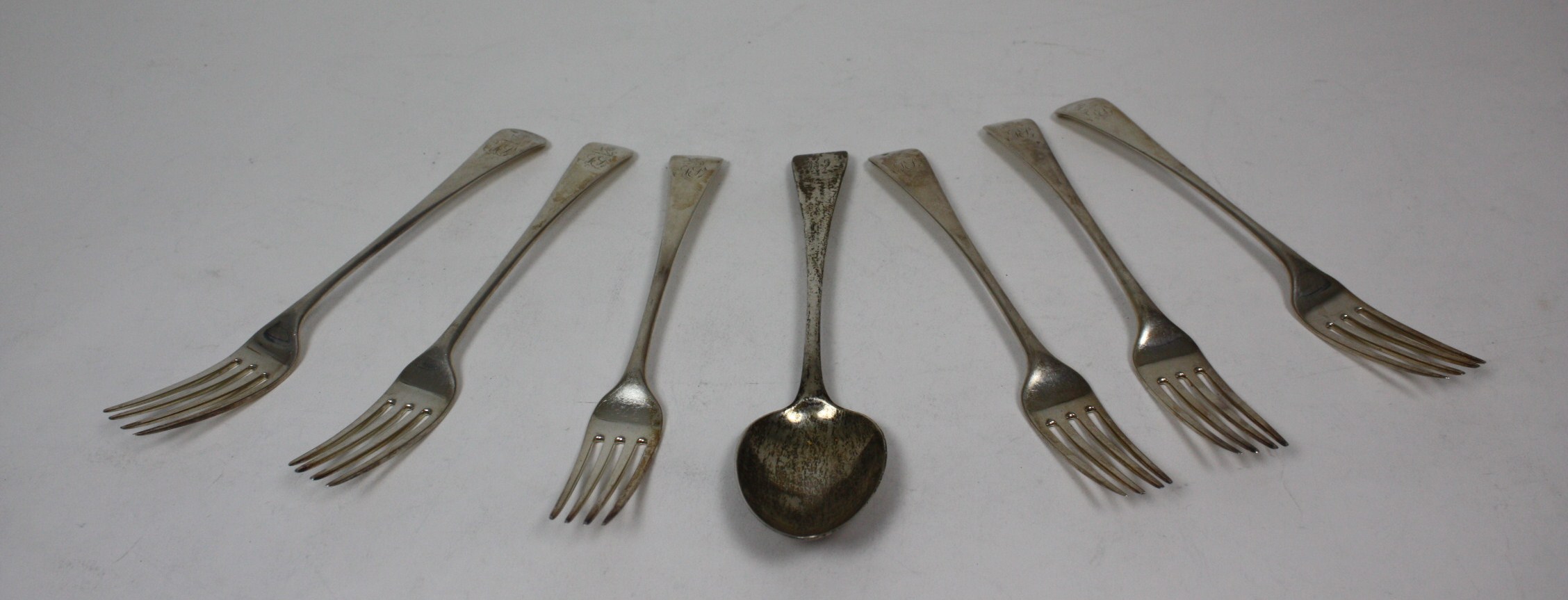 A set of fourteen George III tableforks