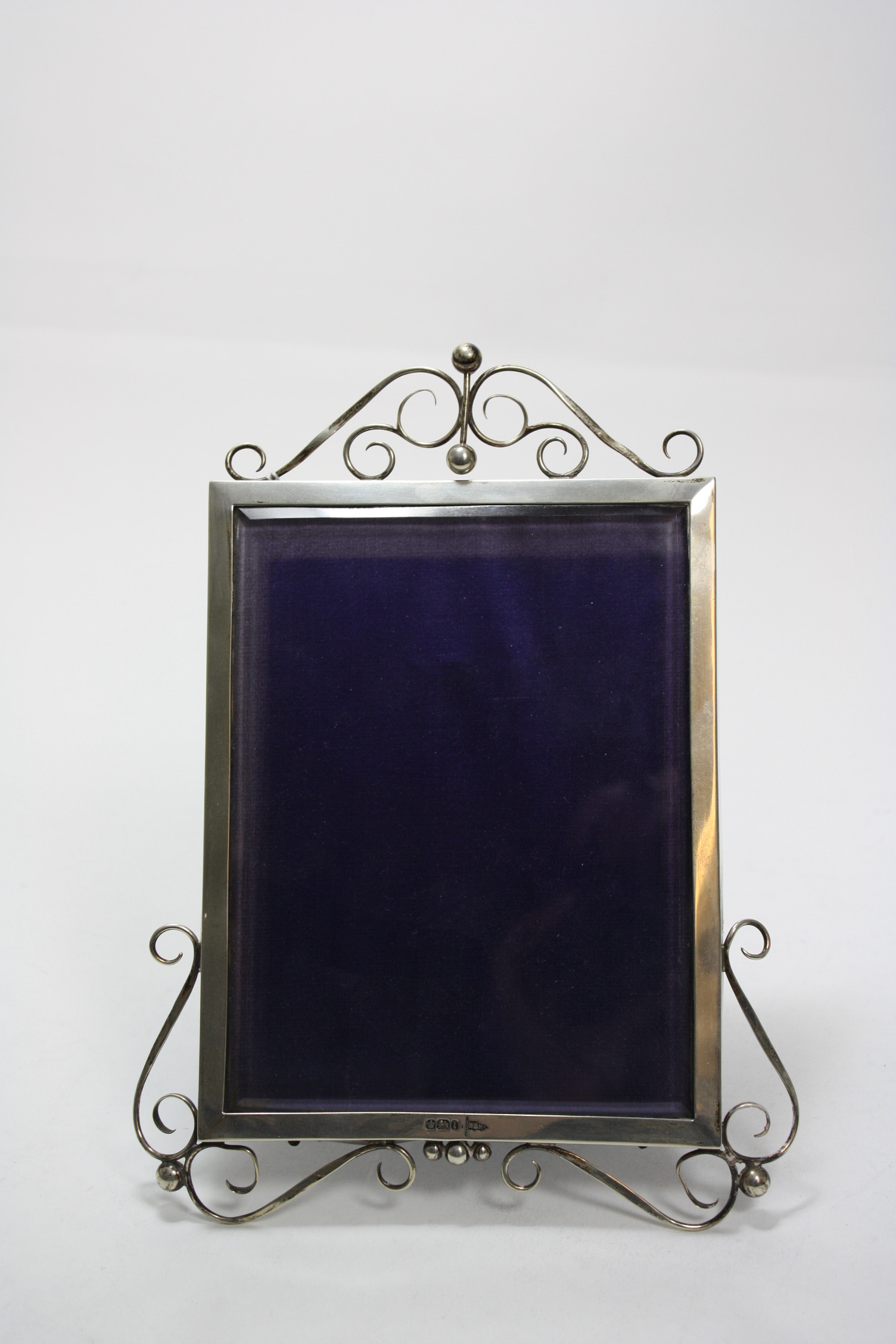 Walker & Hall Sheffield 1903, the rectangular form and with scrolling surmount and details to corners, with velvet covered easel back