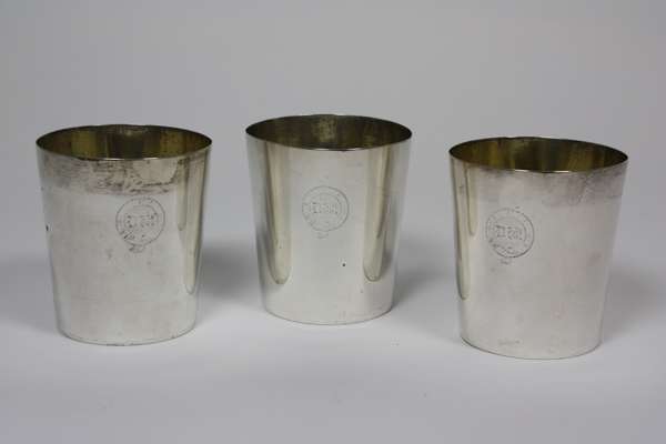 London 1838, each of simple tapered form with engraved initials within motto to body (3)