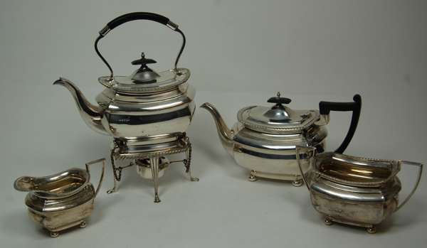 A four piece silver tea service